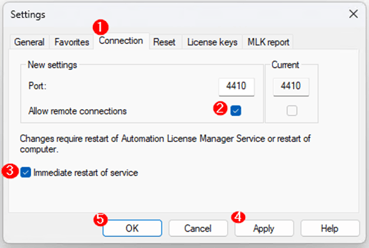 b. Select the checkbox "Immediate restart of service" if you want your changes to take effect immediately. Click 'Apply'. The ALM service will automatically restart.