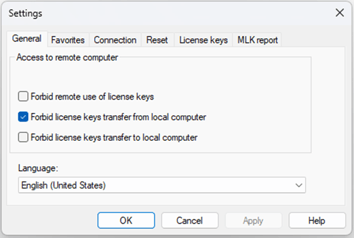 4. Go to the “General” tab in the settings dialog and make sure “Forbid remote use of license keys” is unchecked